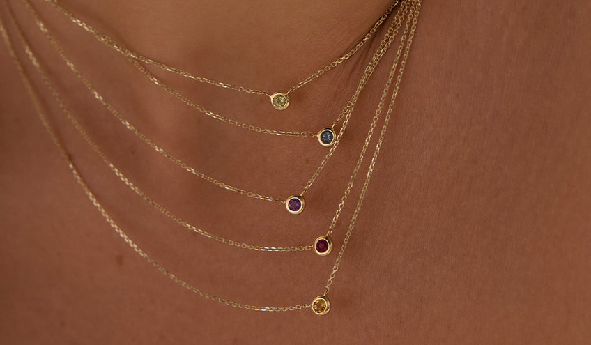 Product recommendation: Ember Hoops - Gold, Sun Dance Ring - Gold, Petite Birthstone Necklace - Citrine in Gold, Soleil Tigers Eye Necklace - Gold