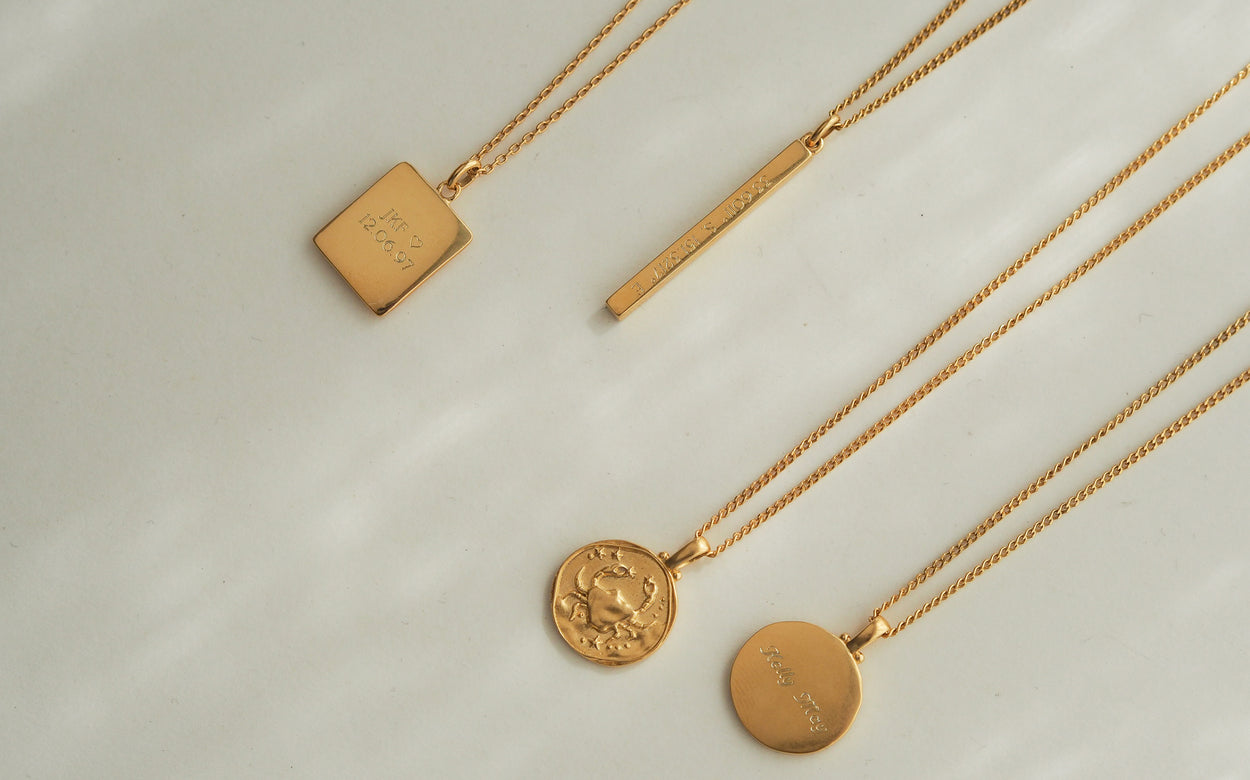 Read more Read lessAdd unique and personal details to our engravable jewellery as a reminder of shared moments, dates and messages. Celebrate birthdays, anniversaries and... Add unique and personal details to our engravable jewellery as a reminder of shared moments, dates and messages. Celebrate birthdays, anniversaries and weddings with a delicate ring, fine bracelet or motif necklace. Effortlessly fusing classic designs and modern style, our engraved necklaces are a gift your loved ones can cherished and keep close to their heart. Opt for a single word or date on smaller pieces, and a... Read more Read less
